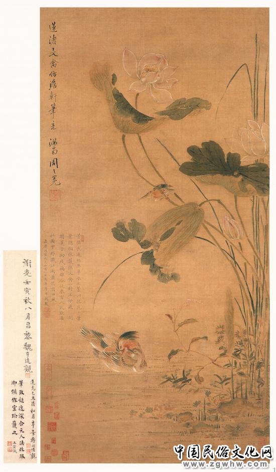 明,周之冕,《莲渚文禽图》,南京博物院藏